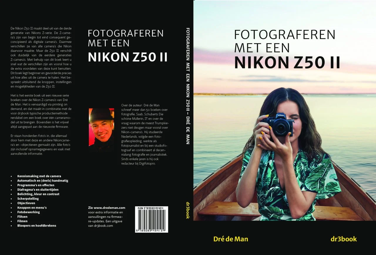 Fotograferen met een Nikon Z50 II is het eerste boek uit een nieuwe serie boeken over de Nikon Z-camera’s van Dré de Man. Het is vervaardigd via printing on demand, en dat maakt het in combinatie met de voor dr3book typische productiemethode rendabel om een boek over één cameramodel uit te brengen. Bovendien is het vrijwel altijd aangepast aan de nieuwste firmware.