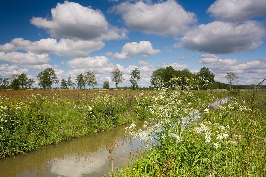 Om diepte in een foto te creëren kun je gebruik maken van de lijnen die in het landschap aanwezig zijn. De sloot in de foto van de Oude Riet begint linksonder in het beeld en leidt het oog naar de horizon. We noemen dit een invoerende lijn.