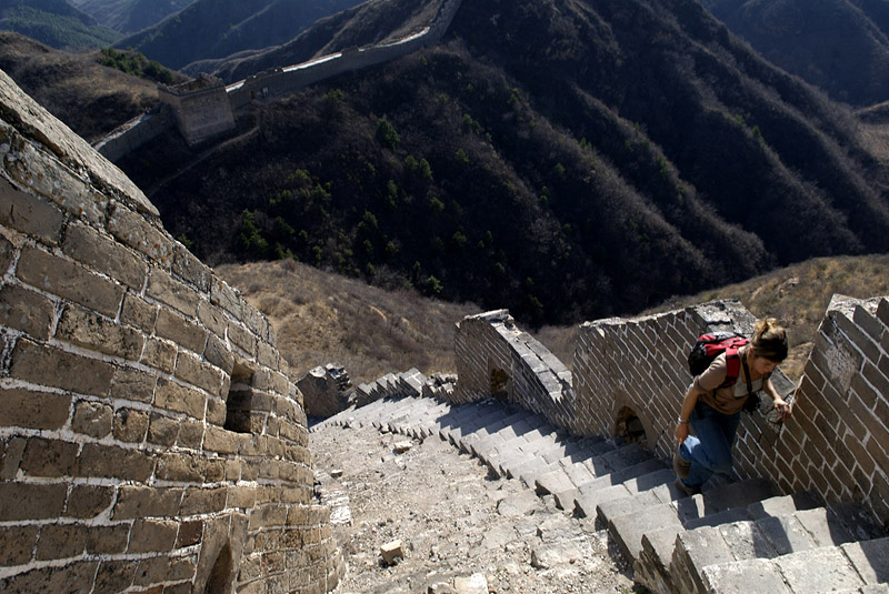 Een week later reisden wij af naar de Grote Muur, bij ons wel bekend als de Chinese Muur. Een Chinese vriendin en Mongoolse vriend namen ons mee naar een afgelegen stuk waar we de hele dag over gewandeld hebben zonder enige toerist tegen te komen. Alleen bij het opstappunt en aan het eindpunt liepen er toeristen, bijna allemaal Chinees.