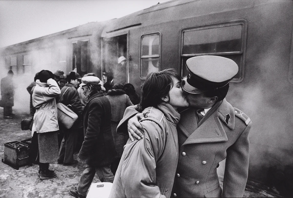 Een Roemeense soldaat wordt door zijn vriendin verwelkomd bij zijn terugkeer in Brasov na weken van ononderbroken dienst in Boekarest. Daar vonden massademonstraties en confrontaties plaats tussen politieke partijen die na de revolutie om de macht vochten. Met deze foto won De Jong in 1990 de Zilveren Camera.