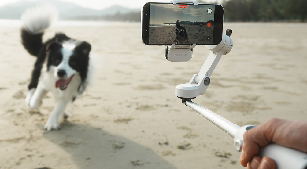 De gimbal reageert ook op subtiele polsbewegingen en op spraakcommando’s zoals “start recording”, waardoor handsfree filmen mogelijk wordt. Met één druk schakel je tussen staand en liggend filmen, en via het nieuwe statusscherm zie je duidelijk in welke modus je werkt.